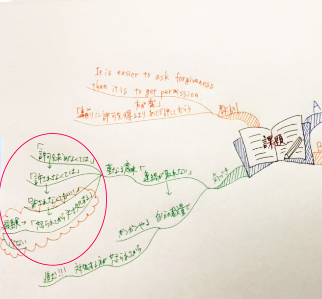 さらに、「許可をとらなければいけない」の背景の奥には「許されなくてはならない」という思い込みがあることも発見しました。